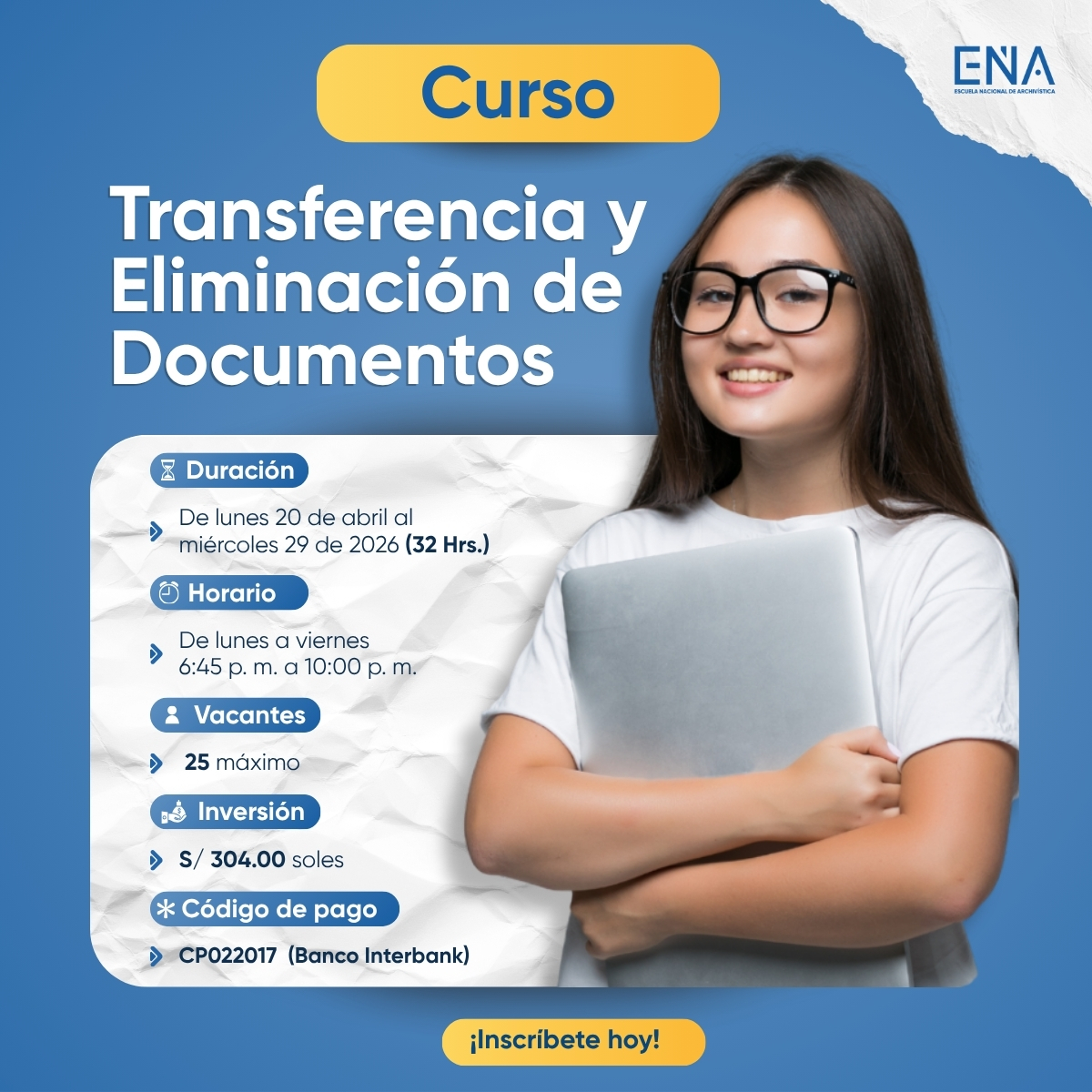 La Escuela Nacional de Archivística, los invita a participar en el Examen de Admisión 2026-I en Lima, donde podrán competir por una vacante disponible.